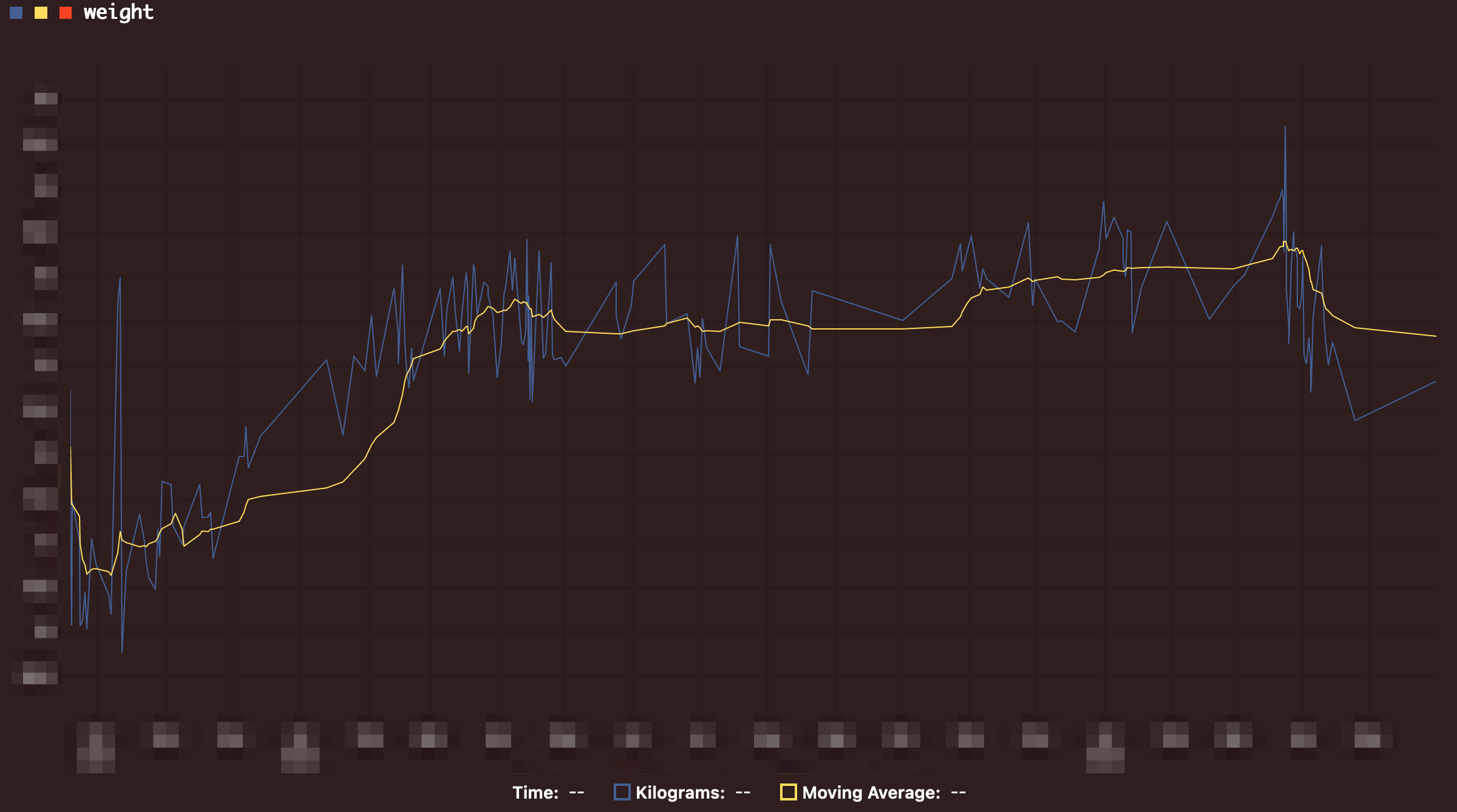 The Wii did include some nice peripheral devices, one such such device was the Wii Balance Board. This board was included with the lifestyle application/game named WiiFit, which encouraged its users to measure their weight/balance daily to track progress over time. At some point I did do this, but despite their earnest attempts at gamification, the streak didn't last very long and the stamps in my calendar grew ever so sparse. It certainly didn't help that doing an actual measurement was a fairly time-consuming procedure constisting of: